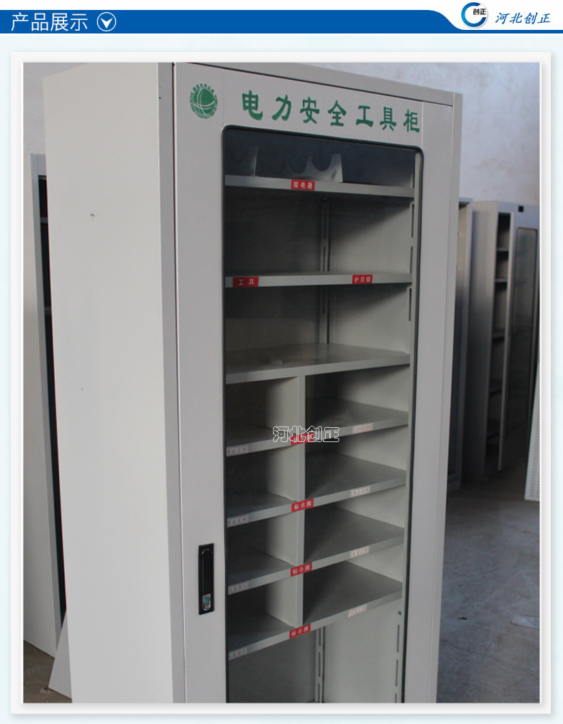 1、柜體是冷軋鋼板卷壓成型,厚度有1.0mm,1.2mm,1.5mm供挑選。柜體外表接納靜電防腐噴塑工藝,色彩為駝灰色,柜門裝有通體通明鋼化玻璃,透過玻璃能夠看到分類有序的工用具。
